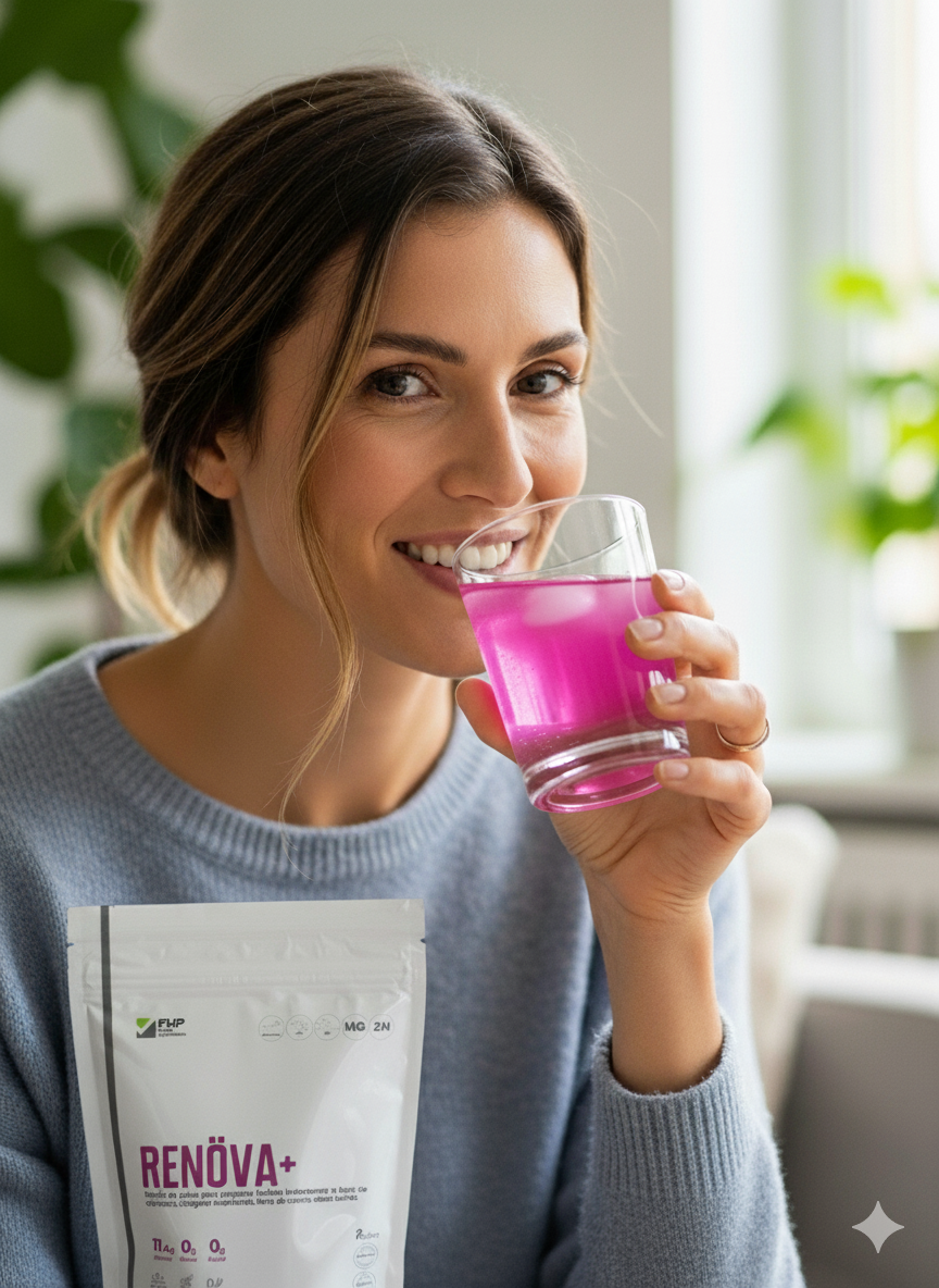Descubre en RENOVA + la dosis diaria de juventud y salud que tu cuerpo necesita. Gracias a su fuente de colágeno hidrolizado con biopéptidos activos, beneficia a tu piel, uñas y cabello; fortalecido con Resveratrol, contribuyendo a la longevidad celular; y potenciado con Coenzima Q10 como antioxidante que contribuye a la regeneración celular.